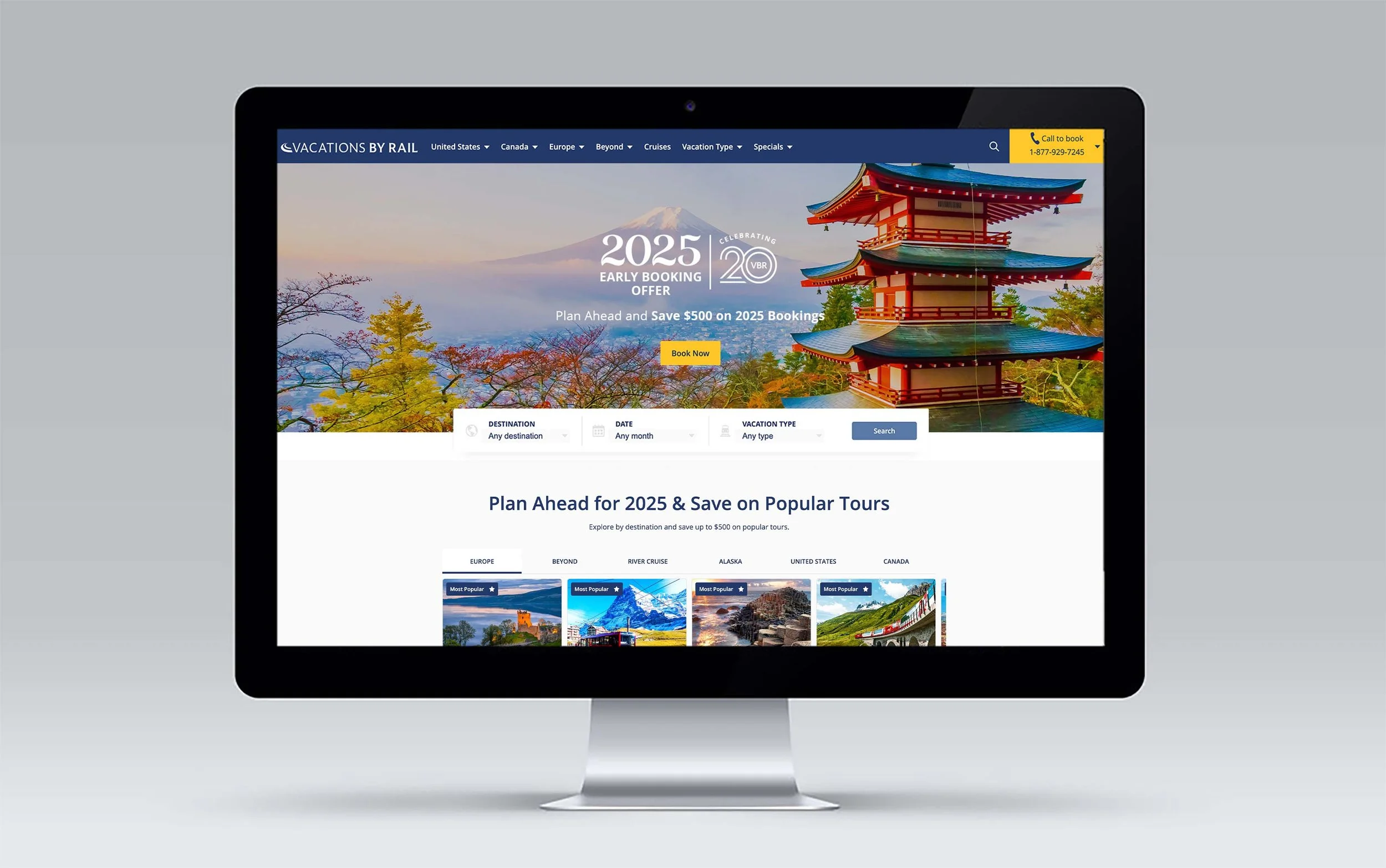 To boost early bookings for the 2025 season, Vacations By Rail launched a multimedia campaign that spanned social media, Google ads, email, and our website. Building on my previous work with our studio team to develop a 20th-anniversary logo, I designed a new logotype that integrated that logo with new text that announced our early booking offer. I created visually compelling video and image advertisements to captivate our audience across various platforms. Additionally, I created the hero video featured on our campaign landing page, ensuring a cohesive and engaging experience for potential customers.