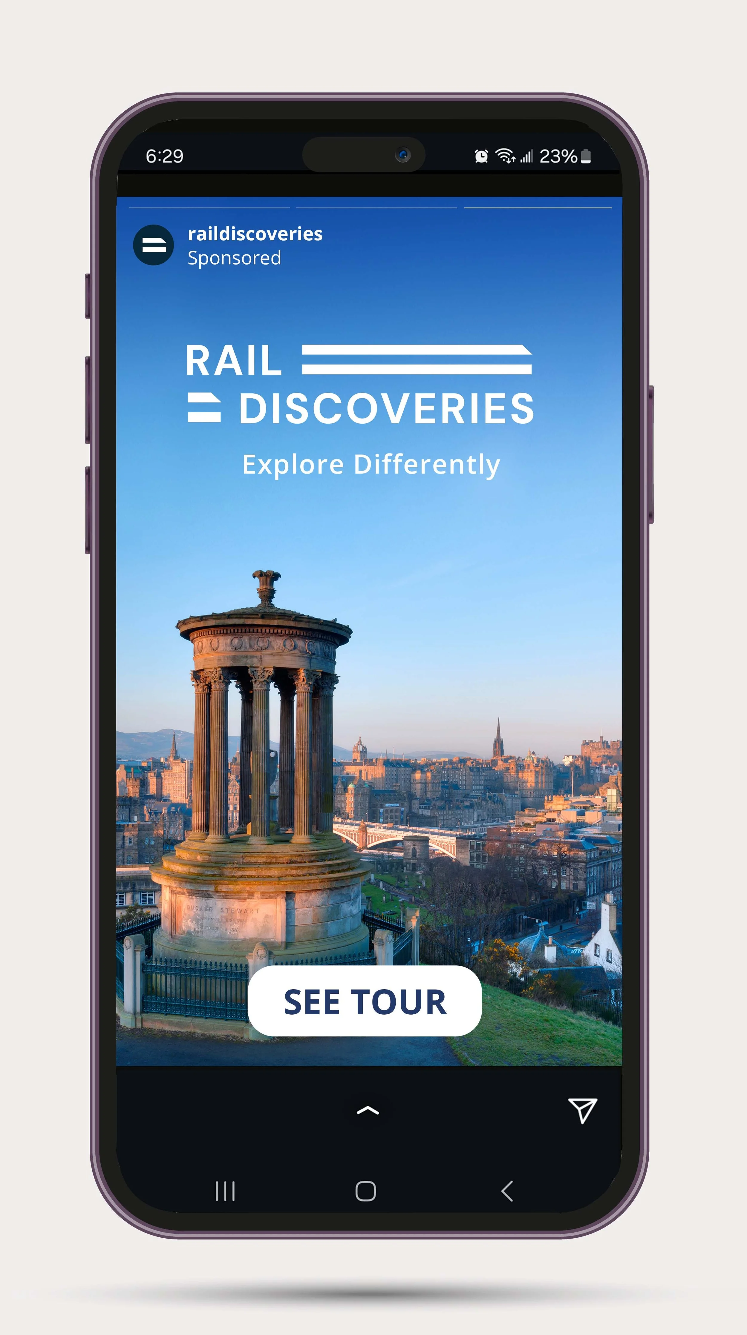 Rail Discoveries, a leading UK company specializing in train travel, sought to revitalize its social media advertising to better promote specific tours. The marketing team wanted a cohesive set of eye-catching templates. I developed a series of customizable templates that integrated the Rail Discoveries logo while emphasizing bold headlines and striking imagery. Utilizing gradients in the brand’s signature colors, I enhanced the visibility of text, ensuring it complemented rather than overshadowed the visuals. I designed a suite of versatile templates that could be used for various Meta digital campaigns, customizable to highlight any tour the marketing team wished to promote.